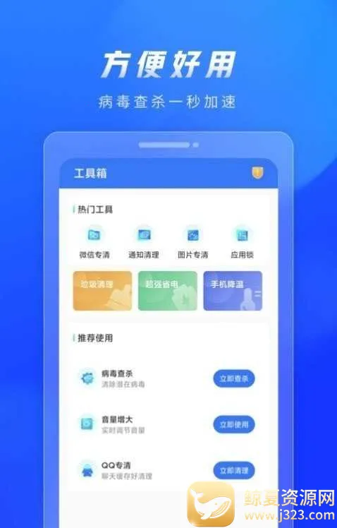 4. 功能全面贴心:首次打开自动全盘体检并可视化呈现关键指标,涵盖清理、加速、防护、省电等功能,一个应用满足多数手机维护需求,为用户提供一站式手机优化服务。