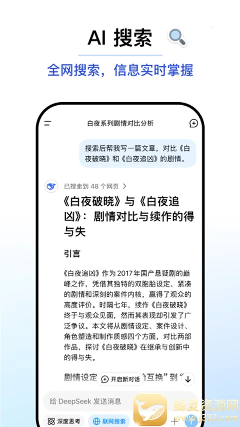 4. 配备先进大模型算法,精确分析总结大量互联网信息,提供详尽直观答案。