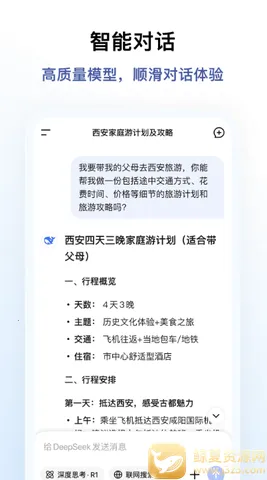 深度求索是一款超棒的AI对话软件。有了它,不管你是想了解AI基础概念,还是探讨特定领域复杂问题,都能快速获得详尽答案。使用起来超方便,点击中间输入栏,输入问题发送,稍等片刻就能得到回应。它能精准理解和生成自然语言,提供多种功能,像语言翻译、文本摘要等。不仅能回答常识问题,专业领域问题也不在话下。还能根据用户行为和偏好精准推荐内容,自动生成高质量文章,节省创作时间。对于学习者,能提供详细解题步骤提升学习效果;内容创作者用它可快速撰写创意文案;专业人士在法律经济等领域也能获得高效支持;多语言用户有了精准翻译,沟通更顺畅。总之,深度求索能满足各种需求,带来极大便利。