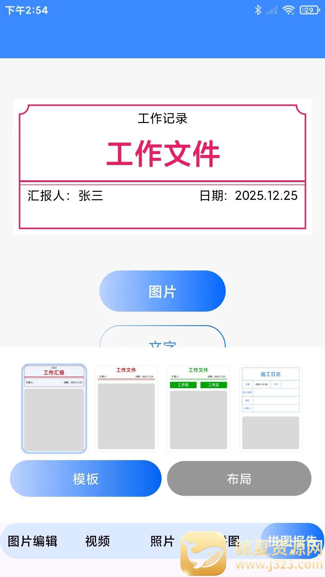 水印免费工程相机是一款超实用的水印相机拍照类app。它能满足你给照片添加独特水印的需求。使用方法很简单:在照片页面可快速拍照,还能及时选择不同水印,这里提供了超多水印资源,能根据不同场景挑选。选择前还能编辑水印,比如输入标题、选择时间地点、设置主题颜色等,点击完成即可。在拼图报告中能选模板,添加图片和文字编辑制作。这款app特色满满,能重新编辑自定义水印,一键套用更多模板。亮点也不少,水印适用于不同场景,能全自动拼图,水印模板更规范,还能批量处理照片,大大节省编辑时间。无论是工作记录,还是日常生活留念,它都能轻松胜任,快来下载体验吧!