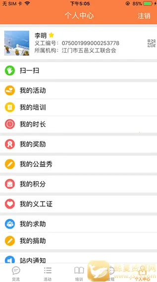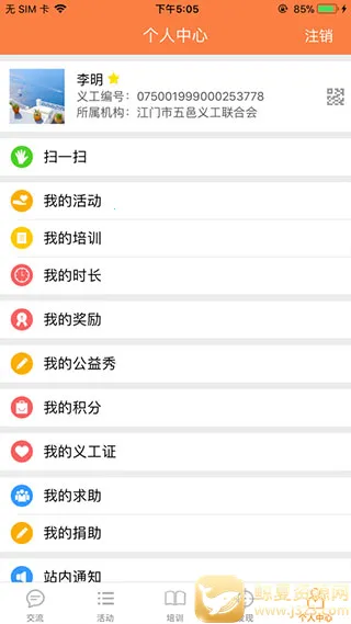 4、能让义工用户查看丰富信息,如义工活动、培训、志愿快讯等,还可在个人中心设置自己的义工信息。