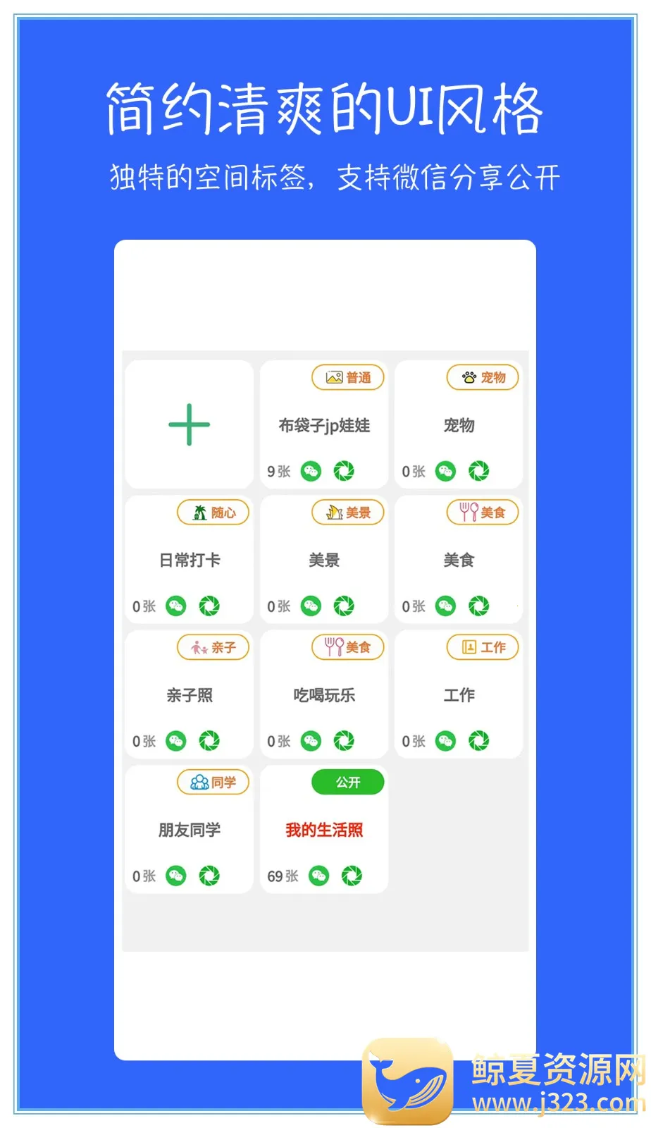支持自定义相册功能,可灵活设置相册名称和照片,还能用标签管理图片视频,便于分享有趣内容,满足您多样化的需求。