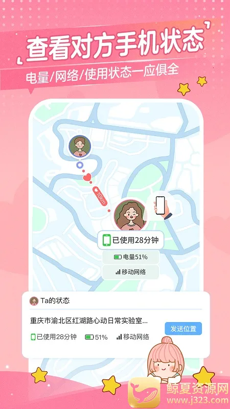 提供安全感:开启定位可查看对方实时位置,随时随地汇报行踪,给异地恋情侣满满的安全感。