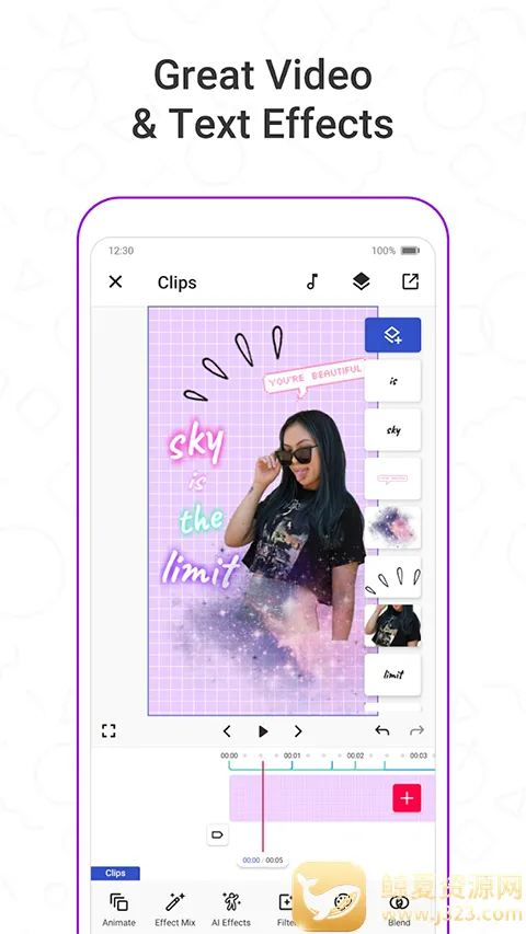 3. 独特的视频创作体验:可添加炫酷特效、绝佳过渡,还能自制特效、为视频配乐,让创意尽情发挥,制作出个性十足的视频。