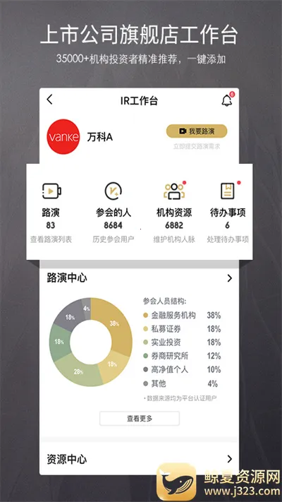 路演中心APP超实用!它能提供线上线下一站式路演服务。功能超丰富,比如可订阅上市公司,查看公司信息时点击旁边订阅功能就行;一键分享路演内容,轻松分享路演视频;能识别获取名片,还有全部添加名片功能。收藏路演视频也很方便,直播类路演详情中还支持在线实时问答。特色满满,有丰富的路演内容栏目,实时直播文字内容展示超贴心,还有海量优质人脉资源。优势明显,能精准推送数据,为发行方匹配潜在投资者,提升沟通成交效率。多种路演场景解决方案满足不同需求,显著提升资本品牌曝光率。不管是上市公司、券商还是基金公司等用户群体,用它都能轻松搞定路演相关事宜,超便捷!