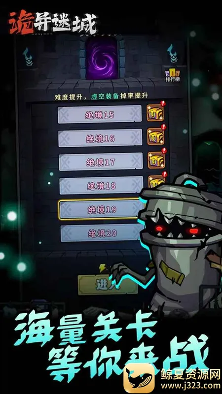 诡异迷城是竖屏横版卷轴视角放置 ARPG 游戏,玩家置身奇幻世界冒险探索。战斗需巧妙搭配装备道具,通过闯关刷宝提升实力。多样怪物、关卡,独特诡异能量系统,丰富装备道具,还有活跃玩家社区,带来难忘体验。